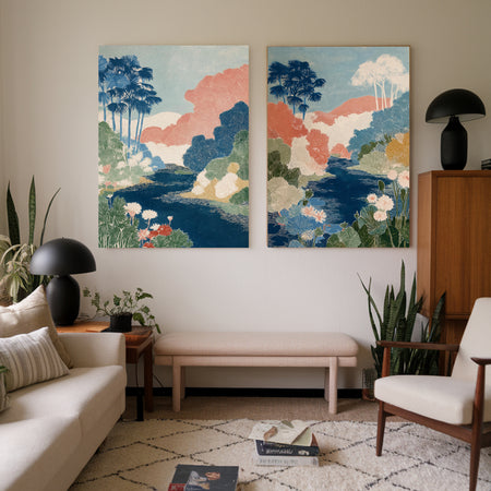 Japanese Flower Garden Set Of Two Art Prints