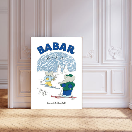 Babar the Elephant Ski Vintage Nursery Art Print